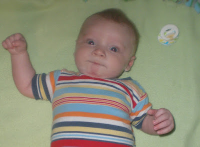 Jackson is also on his last pack of size 1 diapers. Jonathon and I both have decided he needs a 2. I thought this was unusual but the moms on my baby board online are saying their kids are moving into size 2's as well. Glad he's on target. He's supposed to start cereal the end of next month. Lots of moms swear by giving it to them early to help them sleep. I tried this once, and didn't notice any difference in his nap, so I stopped. We'll wait until it's actually time. I'd like him to stay a little baby for just a bit longer. :)